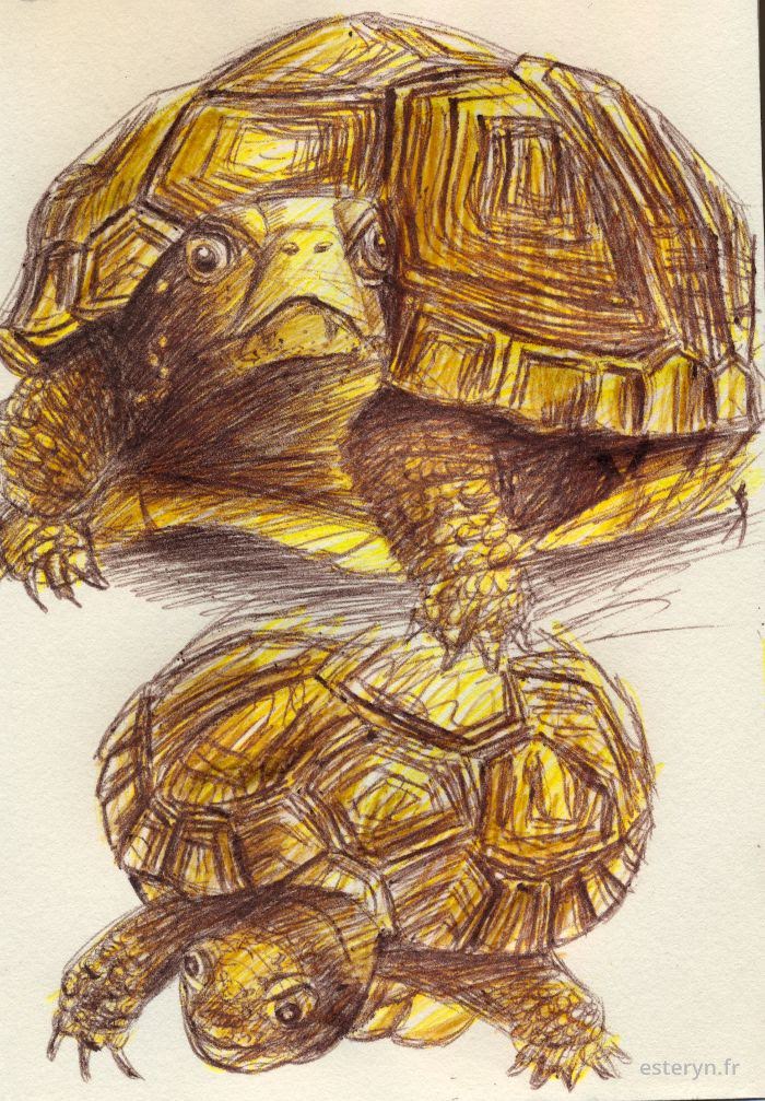 Recherches autour des tortues pour la nouvelle version bilingue du conte La Grenouille et la tortue.